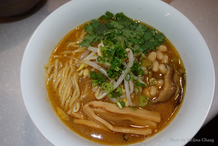 The vegetarian miso ramen was good for what it was. It’s got a konbu and dried mushroom broth, with green onions, soy beans (not nuts!), bean sprouts, bamboo shoots and cilantro. It’s a good option for our veg friends.