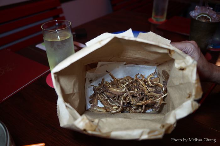 The crispy pig ears with Sichuan pepper and lime is a perfect appetizer! They’re fried to a delicate crunch (I say this because sometimes pig ears are so hard they can crack your teeth) and seasoned perfectly. I want to squeeze lime on my fried pig ears all the time now.