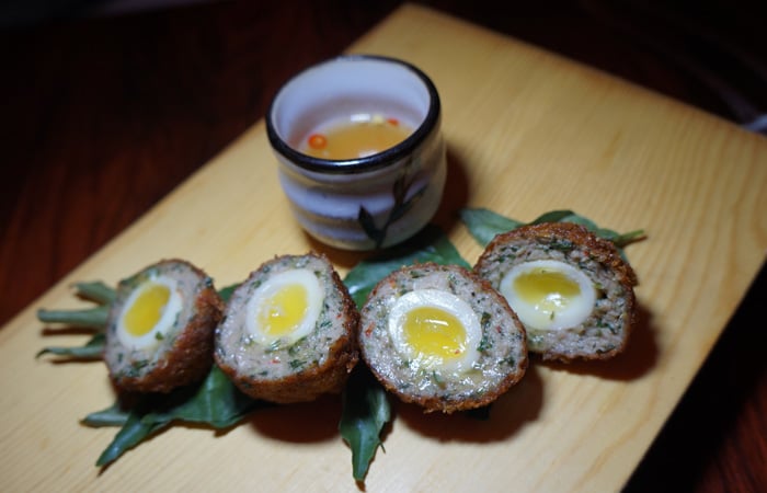 One of Ding Dong’s most famous signature dishes: The Vietnamese Scotch eggs. These are quail eggs wrapped in Vietnamese-spiced pork, breaded and fried and served with a vinegar dipping sauce. Brilliant.