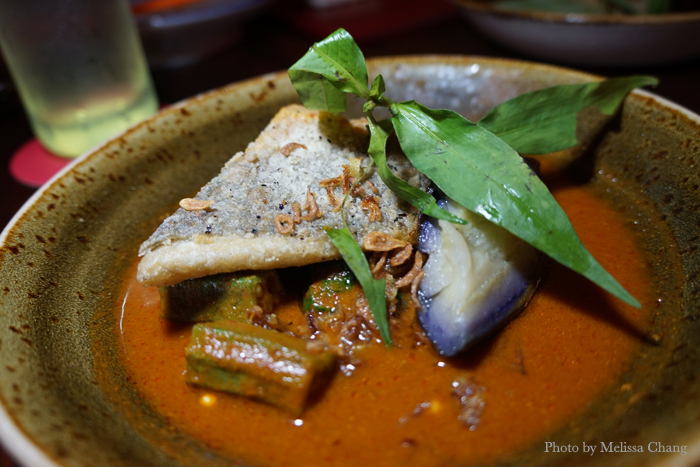 Asam pedas salt water barramundi with okra and baby eggplant.