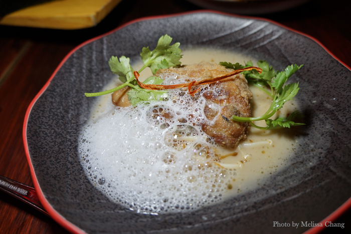 Tom kha crispy quail. The foam was a lot more dramatic when it first came to the table, but you know me … I have to take a bazillion shots of a dish.