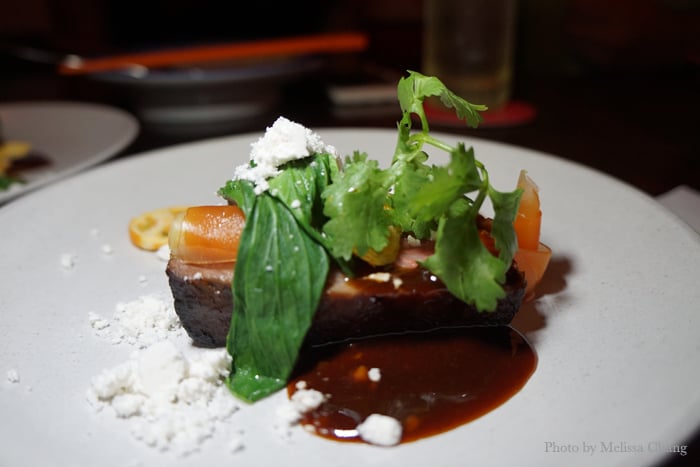 This is a bad photo, but there was no way I could get a good shot of this dish. I need to show it to you, though, because I do recommend it: Waygu beef done char siu style with pickled papaya and cherry tomato. What? Why would you do that to a nice piece of Wagyu? They know what they’re doing — this was one of our favorite dishes, too. It’s got light char siu flavor, plus the beefiness of the super tender Wagyu. I don’t think every restaurant could pull this off, but Ding Dong did it well.