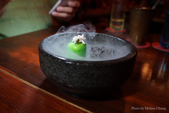 They have interesting cocktails, served in interesting vessels. This is the Fujiyama, comprised of yogurt sake, elderflower liqueur, fresh strawberries and yuzu liqueur. Refreshing!