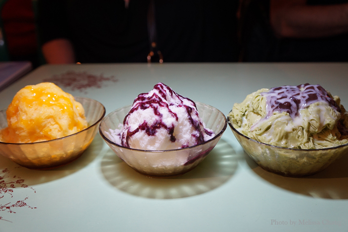 Many of the stalls had some kind of dessert, but we opted for shave ice, of course! This was like Taiwanese shave ice, where the flavor is in the ice: Mango, vanilla with blueberry sauce, and matcha with azuki.