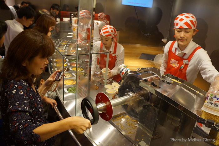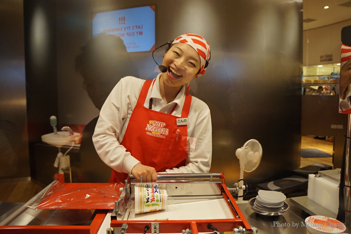 For 300 yen, you walk through a process of making your own cup of noodle. First, you design your container…