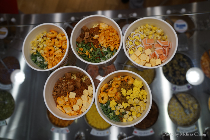 Then you can choose a dried soup base and any four dried toppings to put into your cup. I wonder if there are any combinations that have been really bad? Most of the items seem to go together.