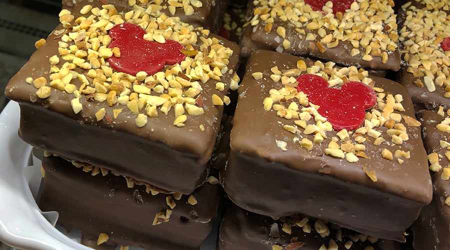 In 2016, this sammie was slightly modified. It’s now made in-house, the outer chocolate layer is covered with chopped nuts and a dark chocolate Mickey decoration, and the peanut butter layer inside is much thicker. They got rid of the graham cracker component, which I miss a little, but I gladly take this more peanut buttery version any day.