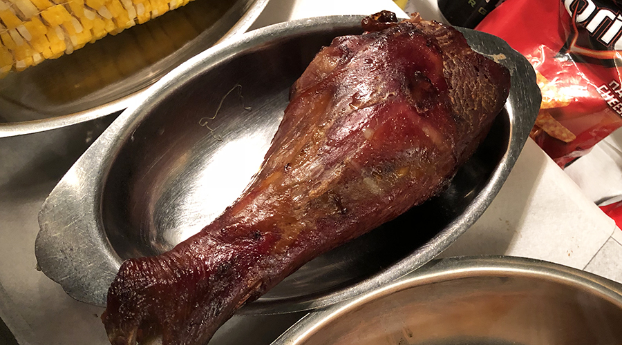 This is what the smoked turkey leg looks like in the hot food cart display.
