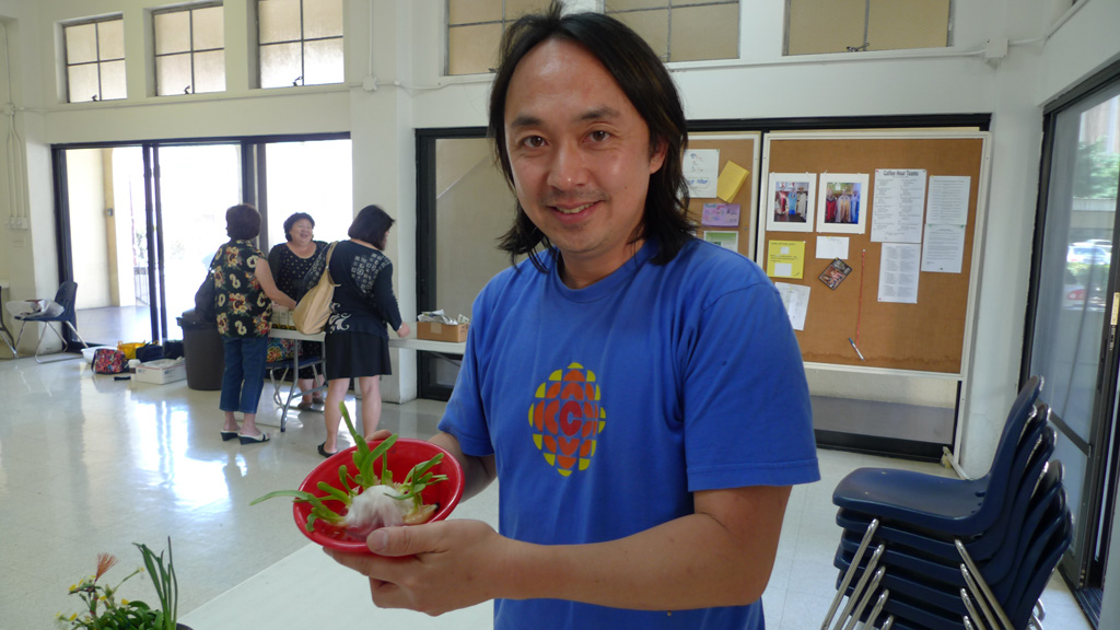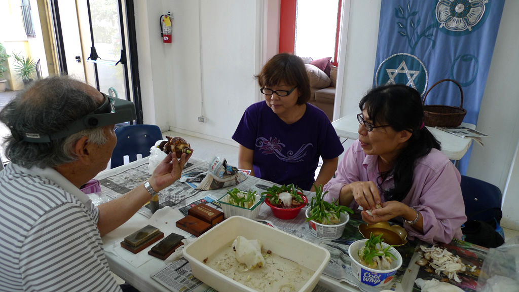 Gilman Hu — also known as “Mr. Narcissus” — is one of those who has unofficially retired, but has passed on his knowledge of carving the bulbs to his students, who now teach classes each January. The classes run on Saturdays from 8:30 to 11:30 a.m. at St. Peter’s Episcopal Church (Parish Hall) for four weeks. It’s too late for you to take classes for this year, but watch this blog at the end of this year for 2015 classes. The class is for both beginners and advanced, and only takes a nominal fee for supplies. For more information on classes, you can email Wayne Ng at Narcissus747@gmail.com.