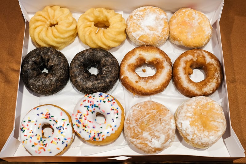 We ask what the shop still has in stock. The voice from the speaker box lists every donut they have left. Boston cream. French cruller. Strawberry cream with sprinkles. Chocolate old fashioned. The list seems to go on for minutes. It’s overwhelming and fascinating.