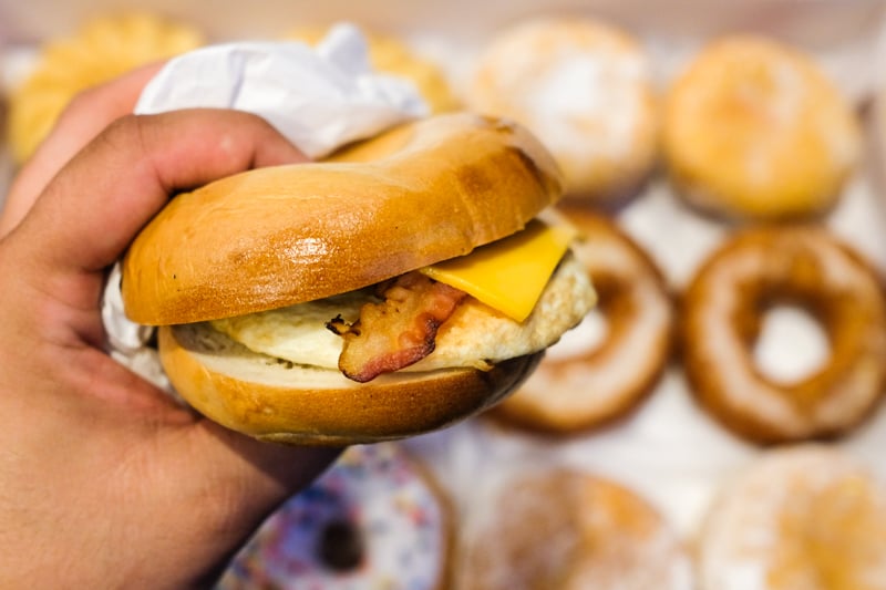 Lemme tell you … waking up is not the easiest thing when the room is spinning. But I downed a jug of water and set out for some rescue food for the rest of the poor souls in the apartment. On this rainy, 50-degree Sunday morning, I lined up at DD for a gallon of their signature hot coffee and two dozen assorted donuts. It proved to be the best decision of those blurry 24 hours, for sure.