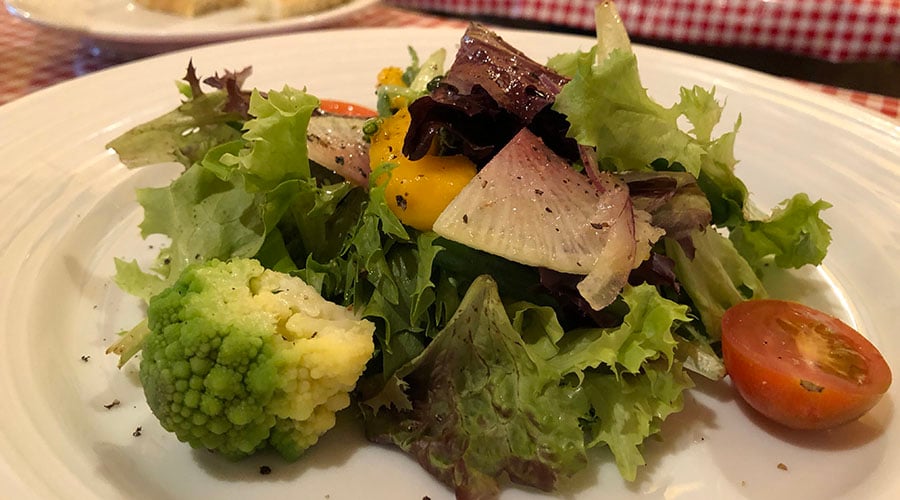 Choose from five pastas (including a black squid ink option) and three pizzas for your main course. Pappardelle alla bolognese — made with Big Island beef — and pizza tre porcellini (basically, a meat lovers pizza) are the two newest additions.