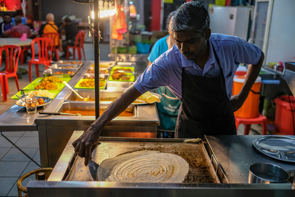After meeting up with Mercy at a train station, we went to her neighborhood food court where she introduced us to nearly a dozen stalls and explained what each made. We watched as they prepared our dishes, so eager to share how they cook them up – it was such a beautiful experience to share. There was everything from char kway teow (wok-fried rice noodles similar to pad see yew or chow fun) and bak kut teh (pork bone “tea” or herbal soup) to Indian thosas (fermented rice and lentil crepes served with daal) and roti (flaky, pan fried breads) and Hokkien mee, a specialty noodle dish hardly found outside of Malaysia. It was incredible to see such a diverse array in one spot, especially when many of the dishes ranged from RM 8-16 or about $2-4 for full plates.