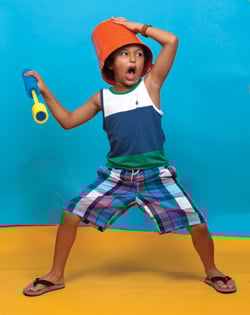 Brighter days are ahead for kids’ summer fashions. Poppin’ primaries and pastels in playful prints are making a color splash on and off shore.