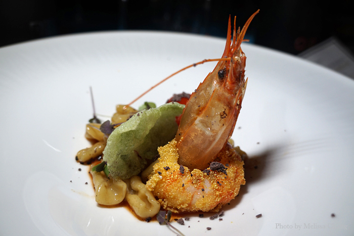 Wild caught ama rbi with ceccalucali puttanesca by Chef Celestino Drago of the Drago Restaurant Group. This was paired with 2013 punta crema “mataossu” from Liguria, Italy.