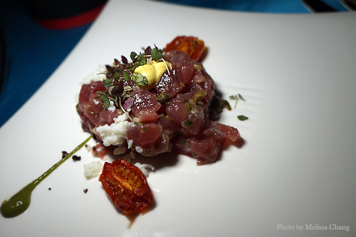 Wild caught big eye ahi nicoise tartare with cucumber, haricot vert and grape tomato by Chef Mark Tarbell of Tarbell’s Restaurant in Arizona. This was paired with 2014 Chateau d’Esclan “Rock Angel” cotes de Provence rose from France.