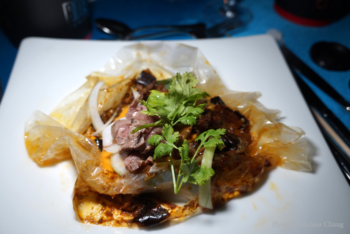 “Pit BBQ” Ni’ihau lamb with slow roasted eggplant and red chile curry sauce by Chef Robert Del Grand of RDG + Bar Annie in Texas. This was paired with 2012 Domaine de la Roquete Chateauneuf du Pape “Piedlong” from the Rhone Valley in France.