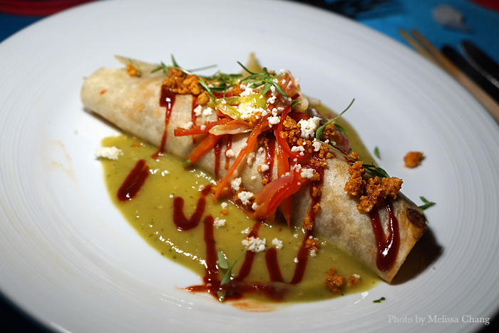 BBQ kalua wild boar tacos with smoked tomatillo, avocado salsa with mango and picked red onion salad and spiced macadamia nuts by Chef Dan Fearing of Fearing’s in Texas. This was paired with 2012 Force Majeure Estate Syrah from Walla Walla, WA.