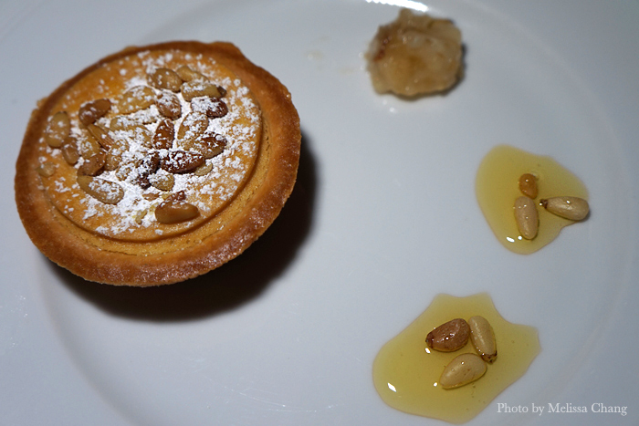Torta della nonna, Hawaiian Island Goat Cheese Dairy and Naked Cow Dairy goat cheese, pine nuts and honey by Nancy Silverton and Dahlia Narvarez of the Mozza Restaurant Group. This was paired with 2012 Birichino muscat canelli from Santa Cruz, CA.
