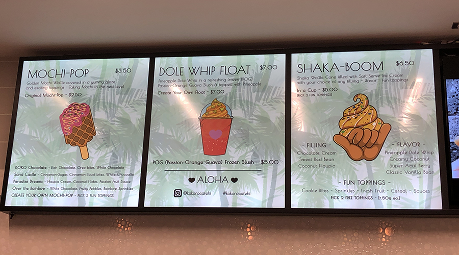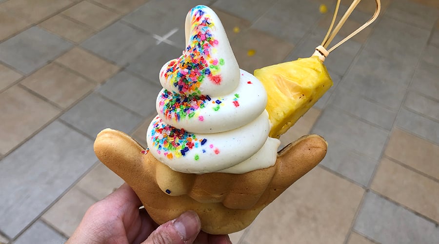 The menu consists of three small and highly Instagrammable desserts. Each has a local twist: the Dole Whip float ($7) is a frozen POG slush topped with a pineapple, while the Shaka-Boom ($6.50) taiyaki can be filled with coconut haupia, chocolate cream or sweet red bean before it’s topped with soft serve.