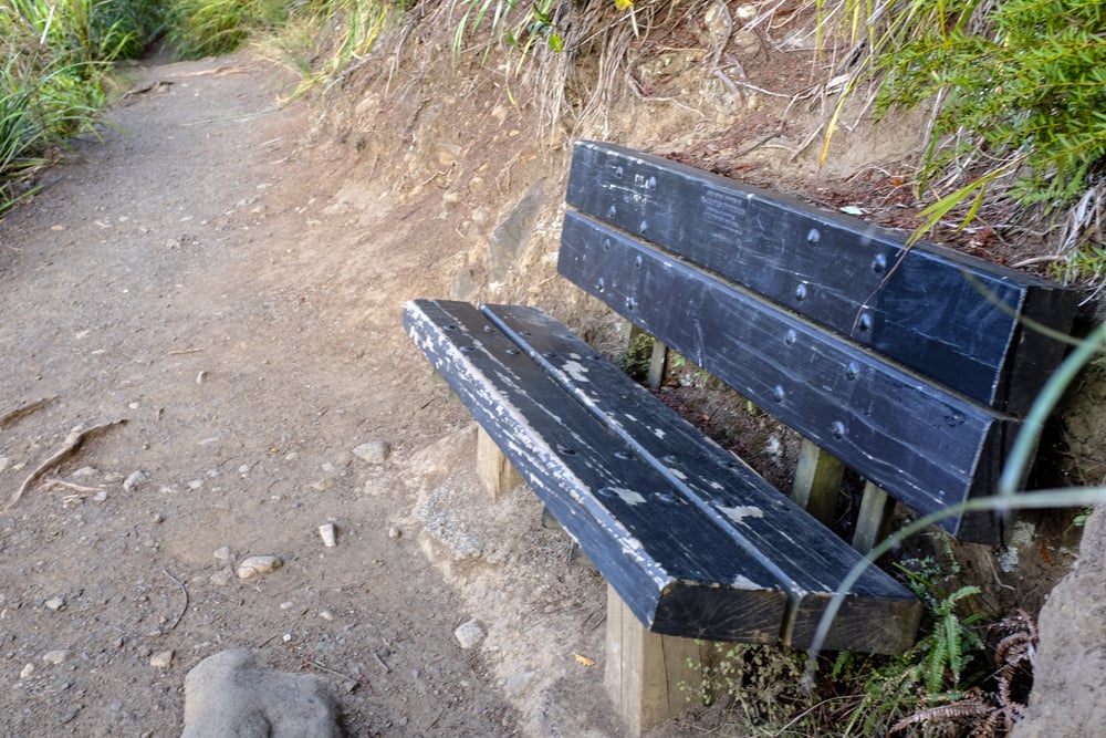Just continue up this steep hill to reach the top, or if you’re feeling adventurous detour up the steps to a fabulous view towards the Hauraki Gulf.