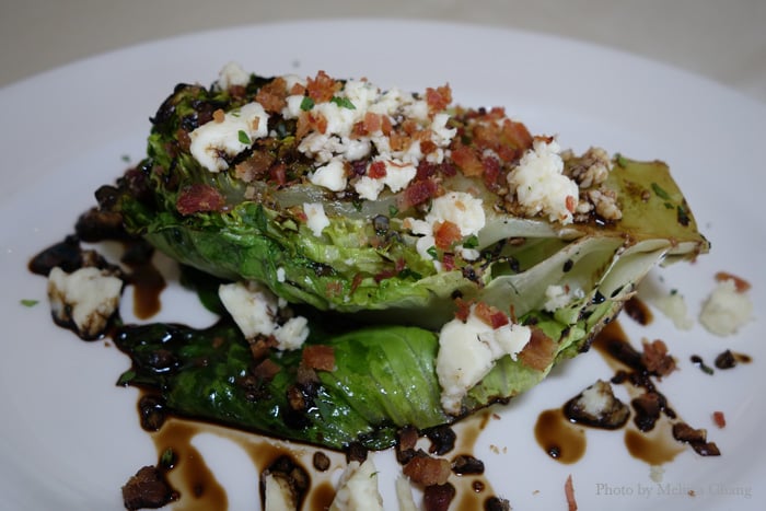 They gave us two presentations of the grilled Maui Romaine salad, so I’m going with the prettier one. This is drizzled in Italian balsamic reduction and topped with gorgonzola cheese and maple-cured bacon. Yum! If you’ve ever made this on your own grill, you know how the char brings out sweetness in the lettuce that you never knew it had. The balsamic and the bacon bring it out even further.