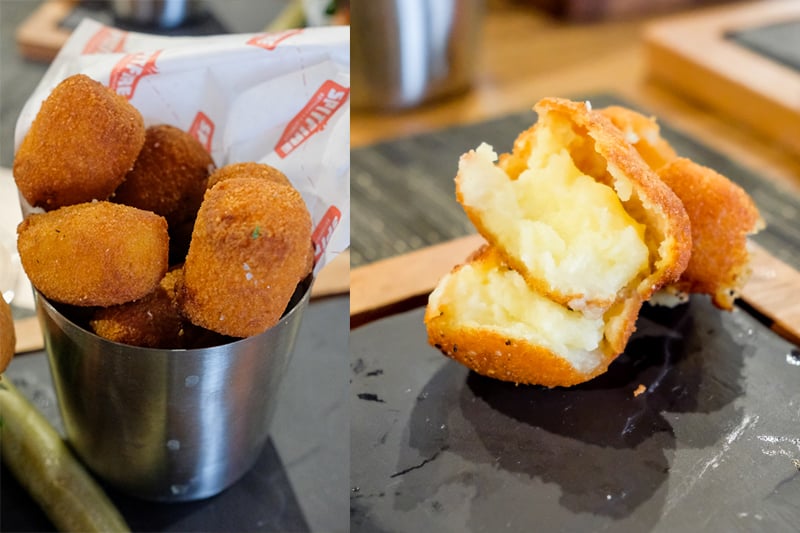 Think silky smooth and ultra buttery mashed potatoes wrapped in a crispy fried tot shell. When you bite in, the aroma embraces you like a warm hug and then you realize they’re hot AF but you don’t care because BUTTAH TOTS. Order ’em to go at Spitfire Rotisserie for $6 or add them to your burger meal for $3. For me, they’re the perfect medium to sop up the spicy mustard sauce that comes with.