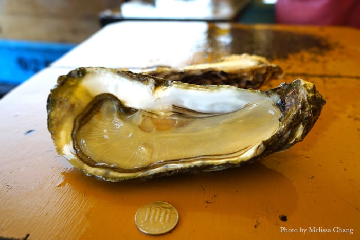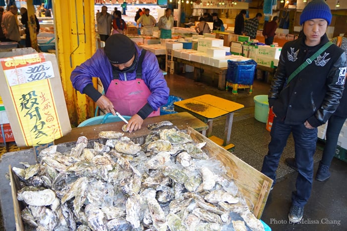 The oyster guy was not so friendly, and that was fine! One oyster for 300 yen, or two for 500 yen. Deal!