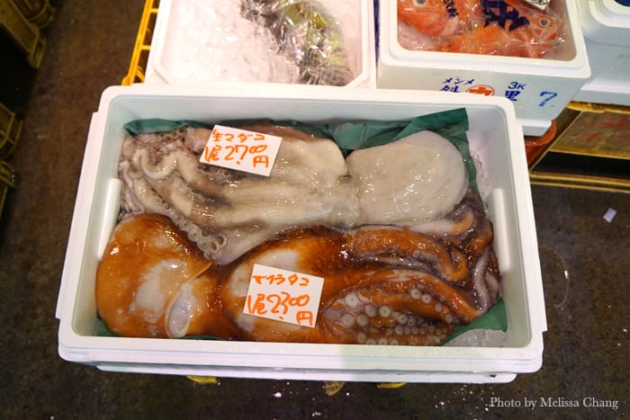 As long as you stay out of people’s way, you can take photos and videos. They aren’t as jaded or weary of tourists as the Tsukiji workers are yet, so if you go, try to be respectful of your surroundings. Here are some items we saw: