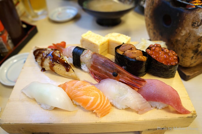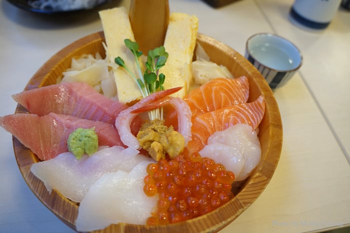 We finally stopped for lunch at one of the restaurants in the complex in the back — they’re all fairly the same, so I don’t think you can go wrong with any of them. This chirashi bowl is a number one best seller, at just 1,900 yen.