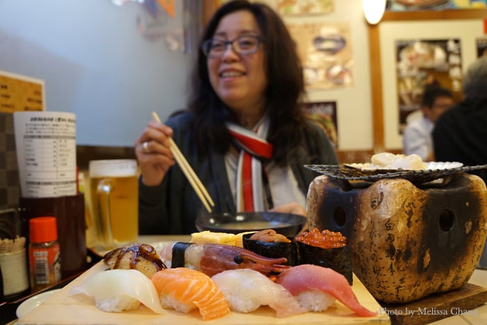 Deb and her über fresh nigiri plate, which was part of the lunch set.