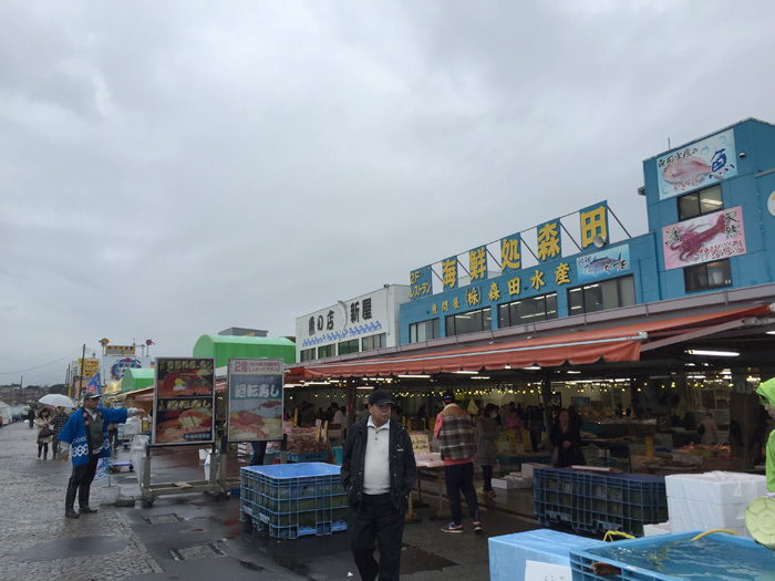 The Nakaminato market spans several buildings along the waterfront and is one of the biggest bases for coastal fishing. It’s big, but only a fraction of Tsukiji’s size. Inside the big market area, you will find men doing every aspect of the job, from cutting to packaging to hawking.